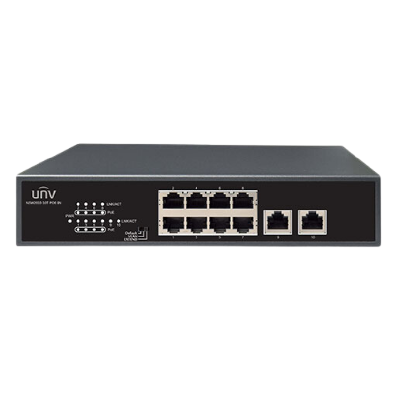 Switch PoE con 8 puertos Gigabit PoE y 2 puertos Gigabit no PoE. Proporciona un presupuesto de potencia de 130W. Soporta funciones VLAN y transmisión de larga distancia hasta 250 metros. Ideal para instalaciones medianas que requieren conectividad Gigabit, alimentación PoE y características avanzadas de red.